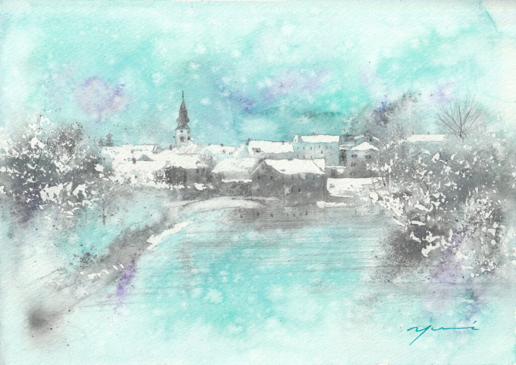 12月水彩色鉛筆教室 風景画コース「Pale Blue Winter」