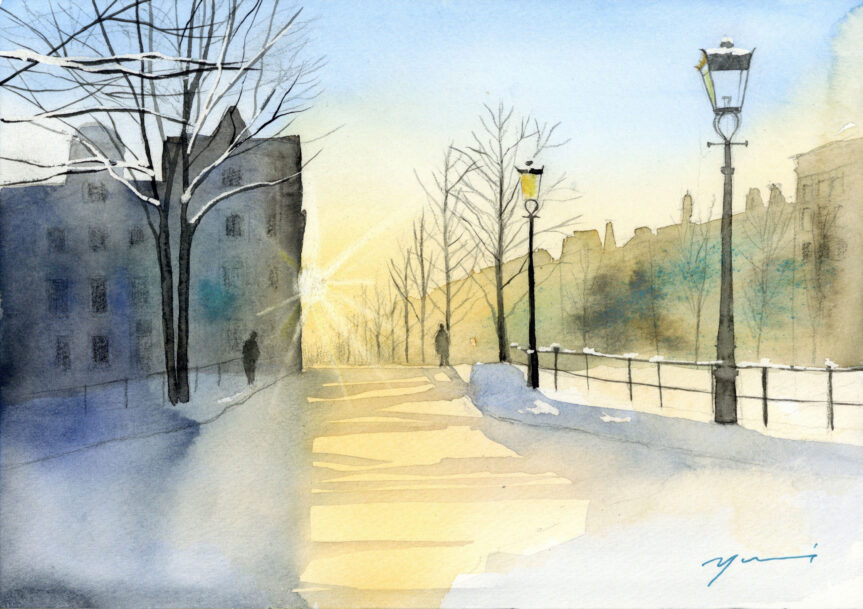 2月水彩色鉛筆教室 風景画コース「雪の朝」