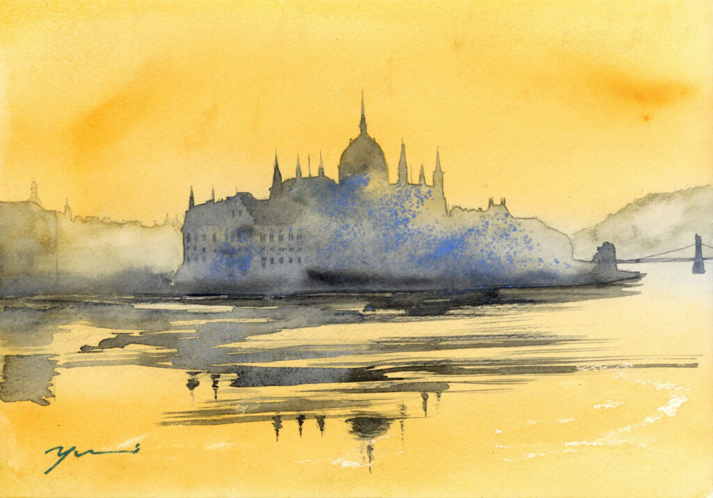 ハンガリー国会議事堂の輪郭はゆっくりと影へ溶けていきます。