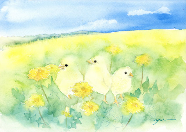 3月水彩色鉛筆教室 「ひよことタンポポ」